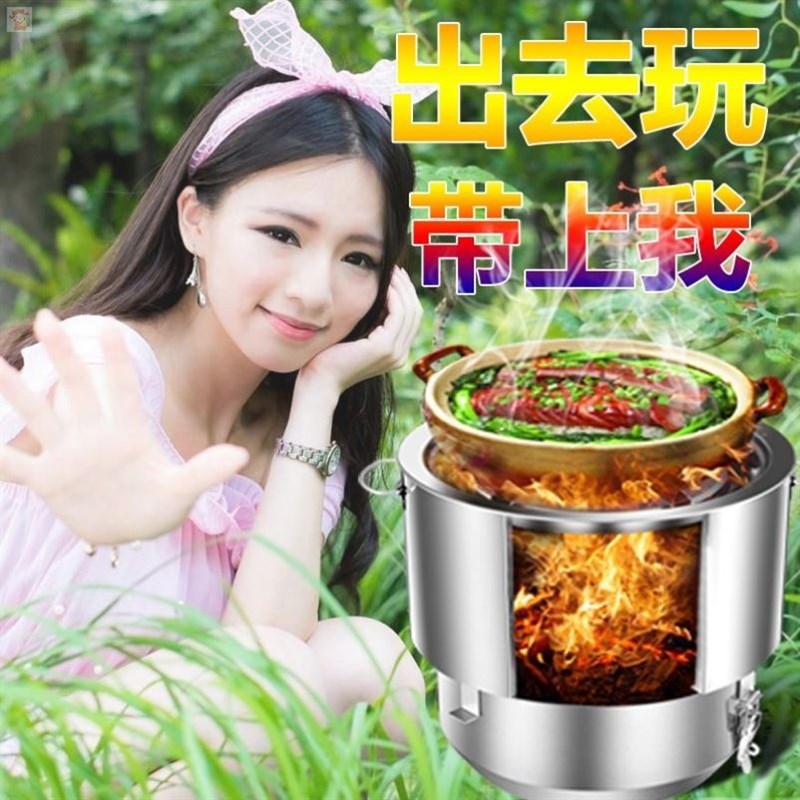 不锈钢户外柴火炉灶野外烧烤炉子野炊多功能便携家用炖汤火锅炒菜