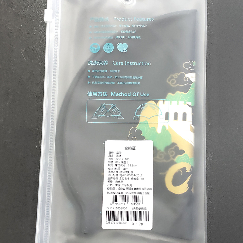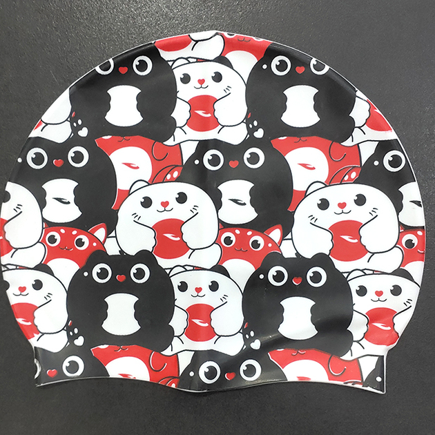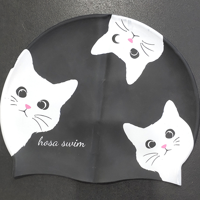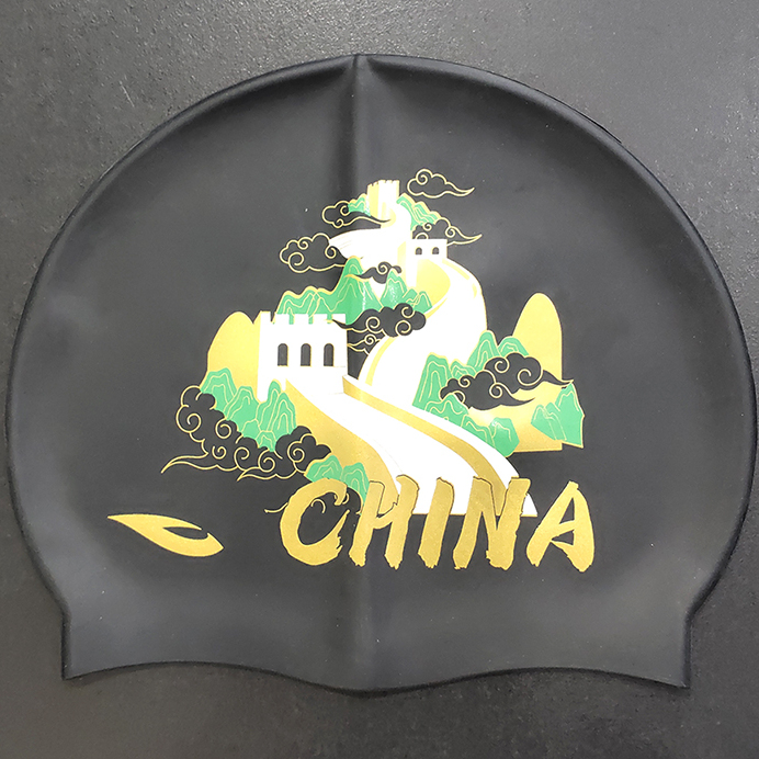 浩沙25新款硅胶泳帽男女通用防水不勒头卡通长城纯黑印花专业泳帽