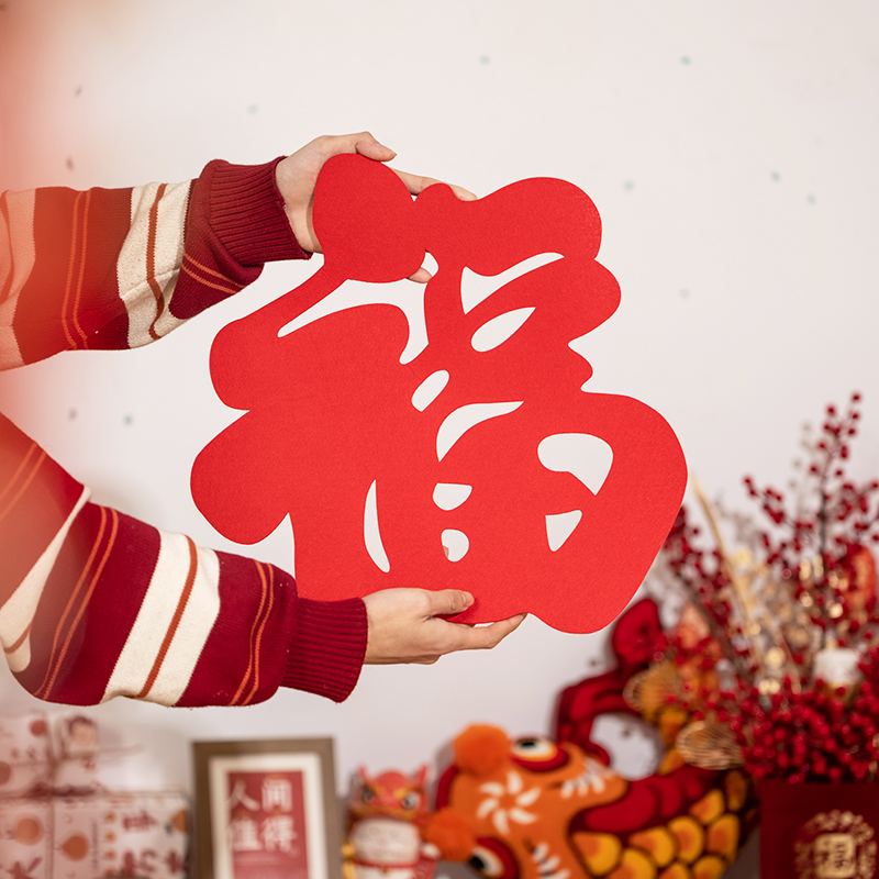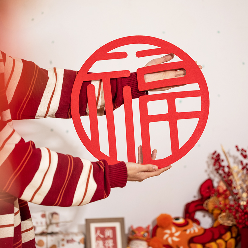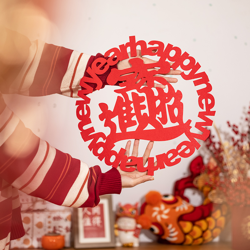 新年大门装饰品2024新款创意毛毡大福字挂件挂饰春节过年元旦装扮