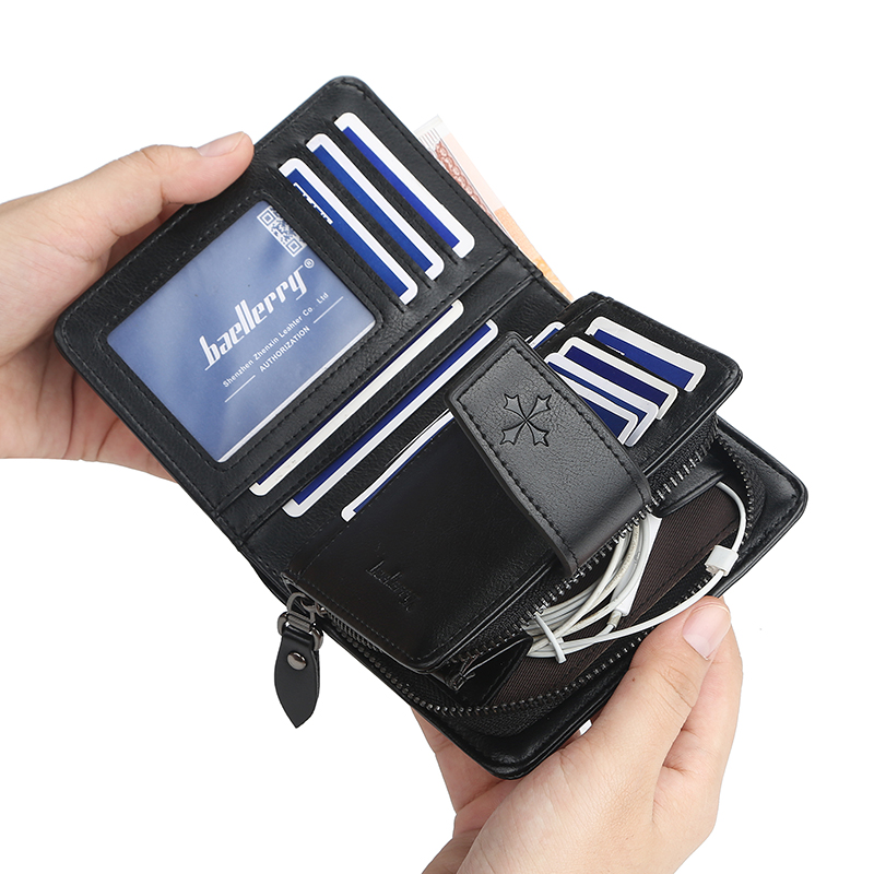 新款钱包男士短款多卡位竖款拉链搭扣零钱包多功能卡包日韩钱夹