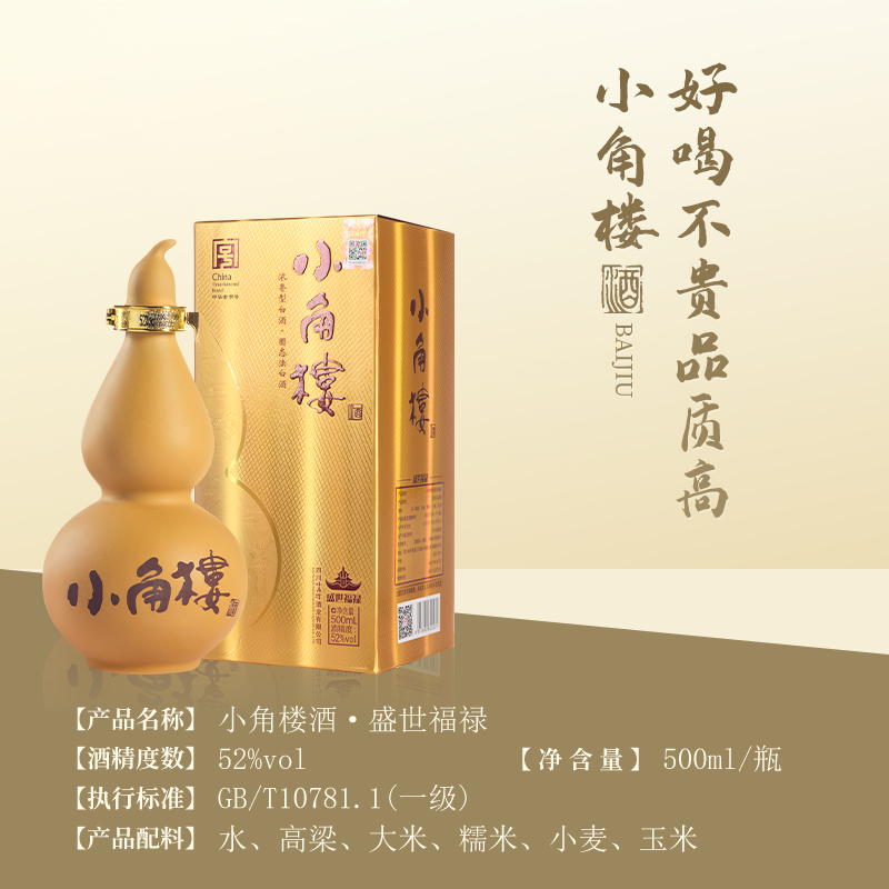 小角楼盛世福禄52度浓香型白酒500ml 固态纯粮单瓶装纯粮食口粮酒