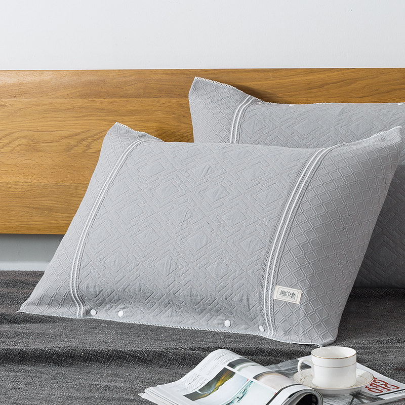 纯棉枕巾一对全棉纱布枕头巾欧式高档半包裹按扣固定防滑成人枕套