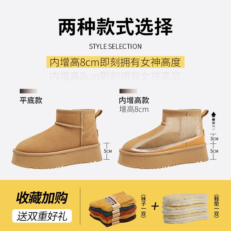 松糕厚底雪地靴女冬2025新款明星同款加绒厚防水短筒内增高棉鞋子