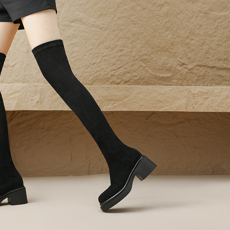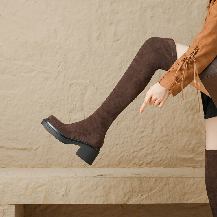 粗跟长筒靴圆头新款弹力靴