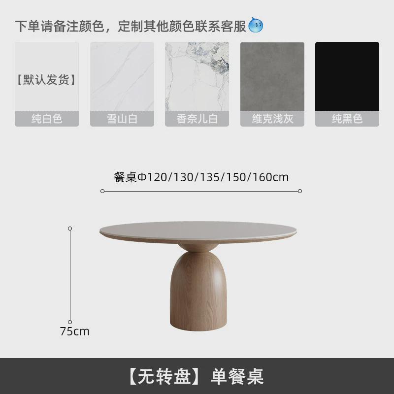 原木奶油轻奢圆形岩板餐桌现代简约风实木圆桌内嵌转盘餐桌椅组合