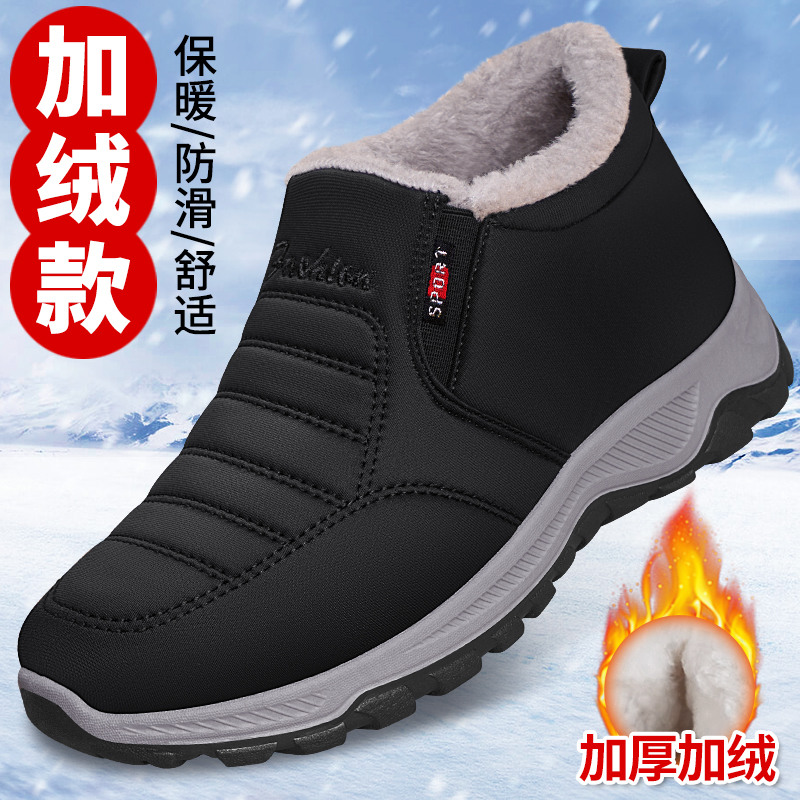 老北京布鞋男冬季加绒加厚防滑中老年官方旗舰店爸爸老人保暖棉鞋