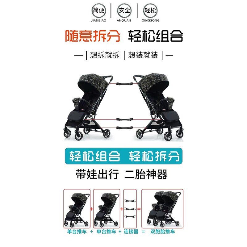 双胞胎婴儿车折叠神器双胞胎婴儿手推车推车轻便坐躺宝宝可坐可躺
