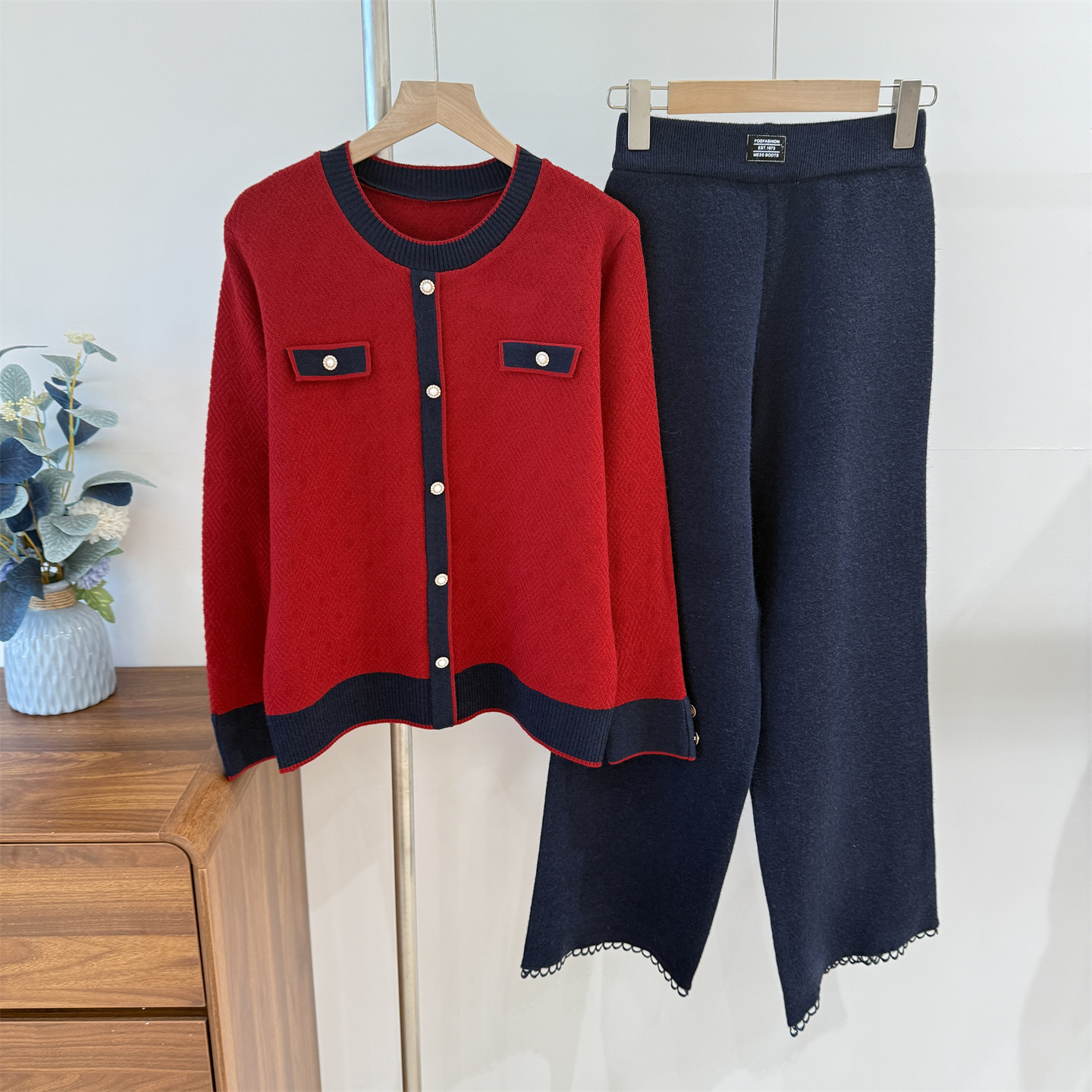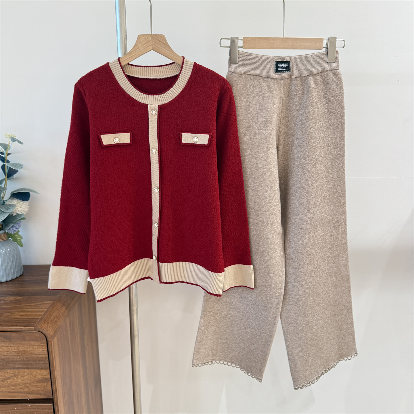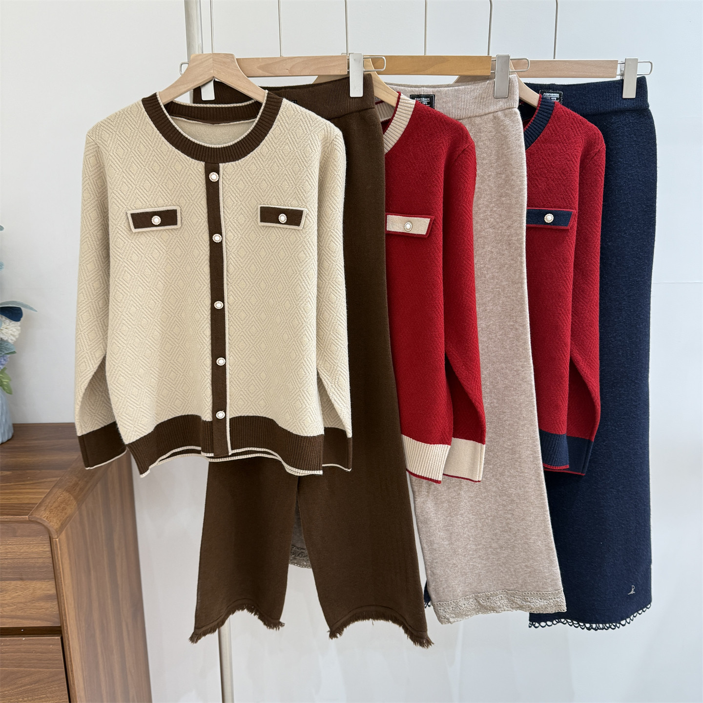 妈妈秋装针织衫两件套2025新款开衫外套中老年女春秋毛衣时尚套装