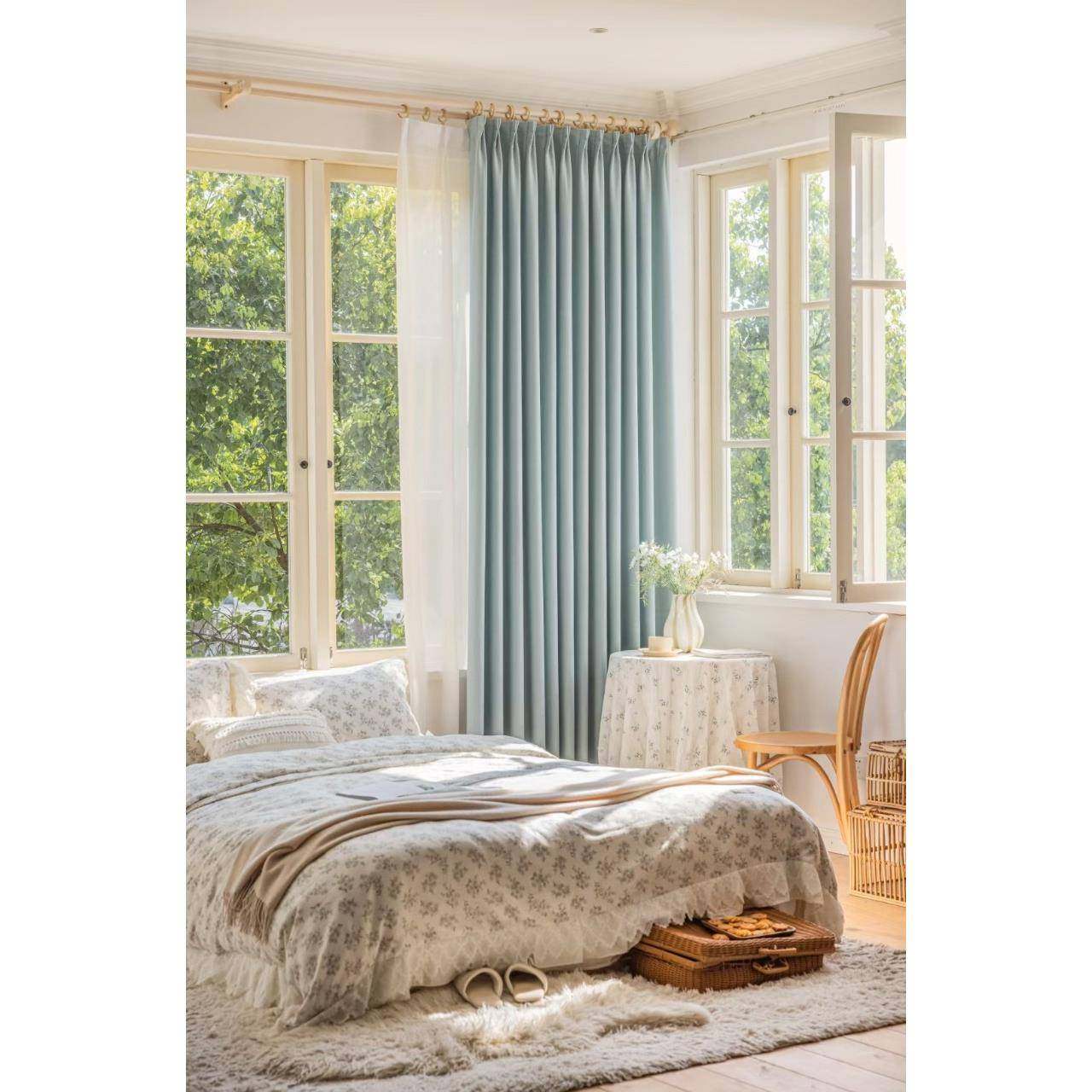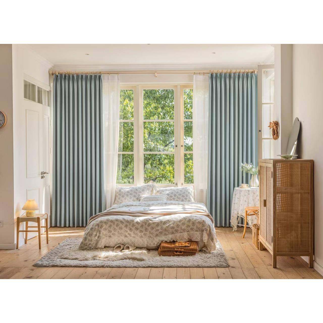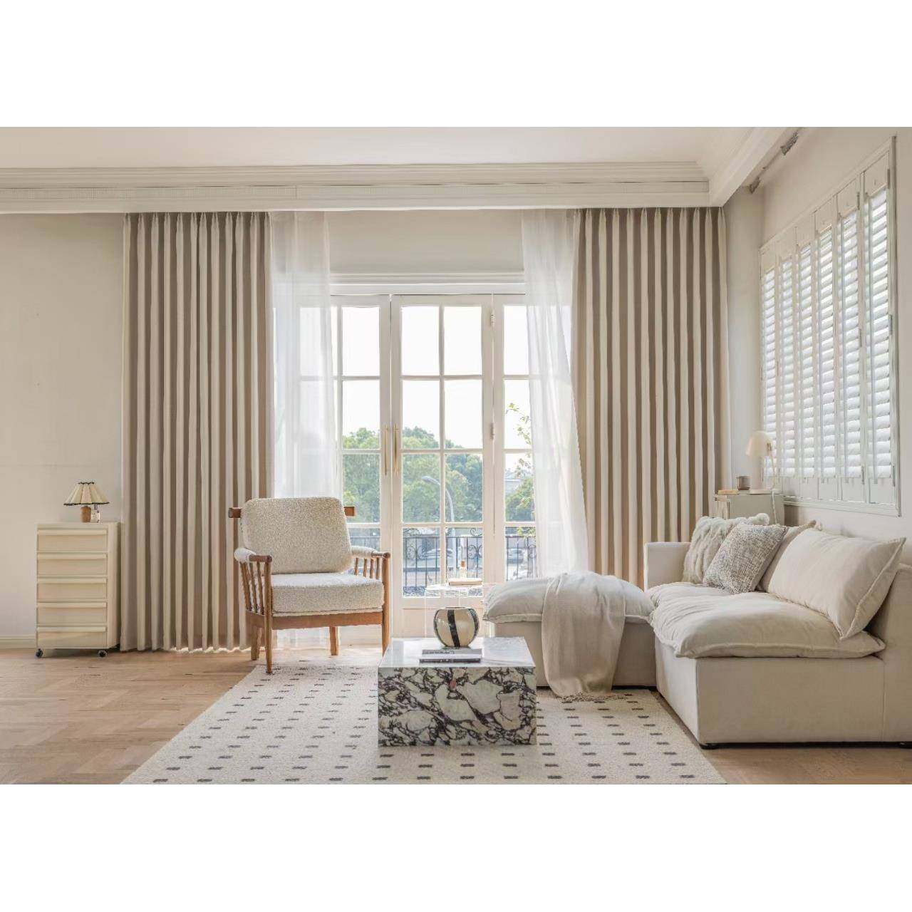 现代法式奶油风白色窗帘遮光棉麻卧室客厅高档成品高温定型落地窗