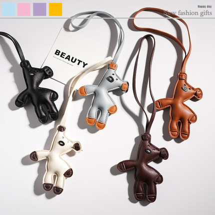 憨豆小熊钥匙扣皮革卡通包包挂件可爱情侣挂饰高级感小礼物