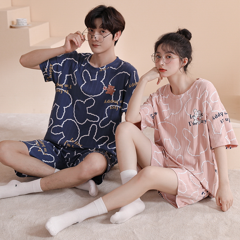 浪莎情侣睡衣夏季短袖纯棉薄款2025年新款可外穿男女士家居服套装