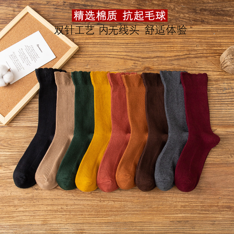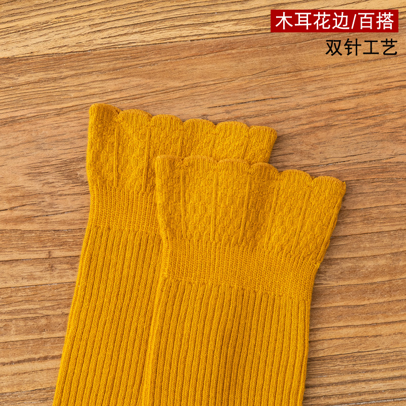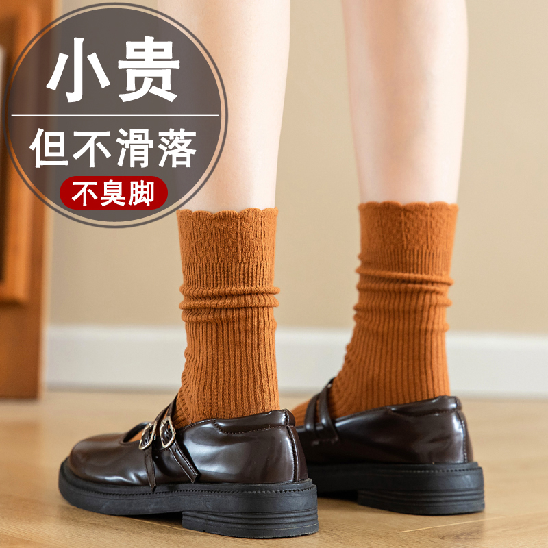 花边堆堆袜女黑色配乐福鞋长袜子jk短靴袜韩国日系秋冬中筒袜不掉