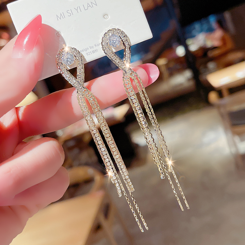 高级感轻奢流苏耳环韩国气质网红长款耳饰圆脸显瘦百搭纯银针耳坠