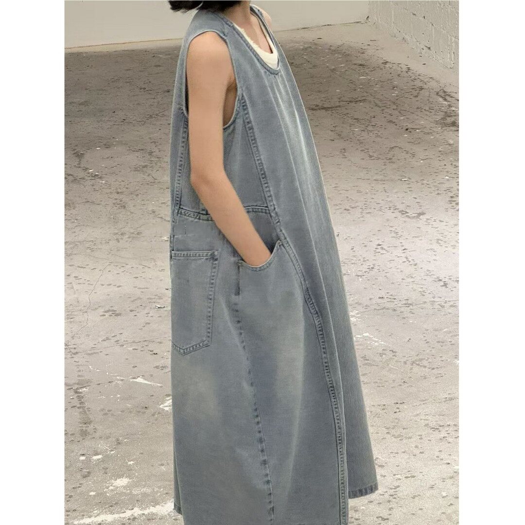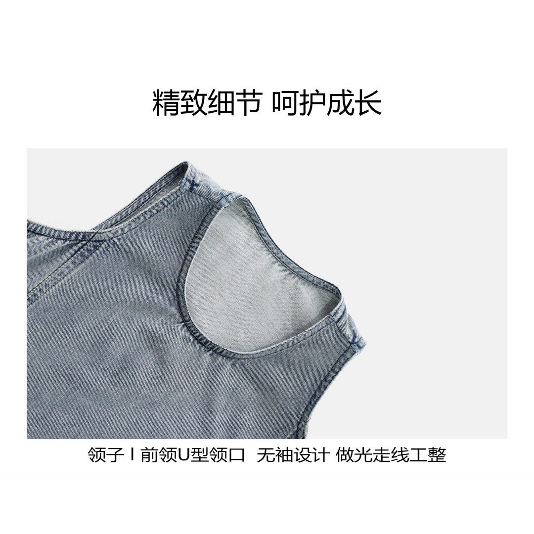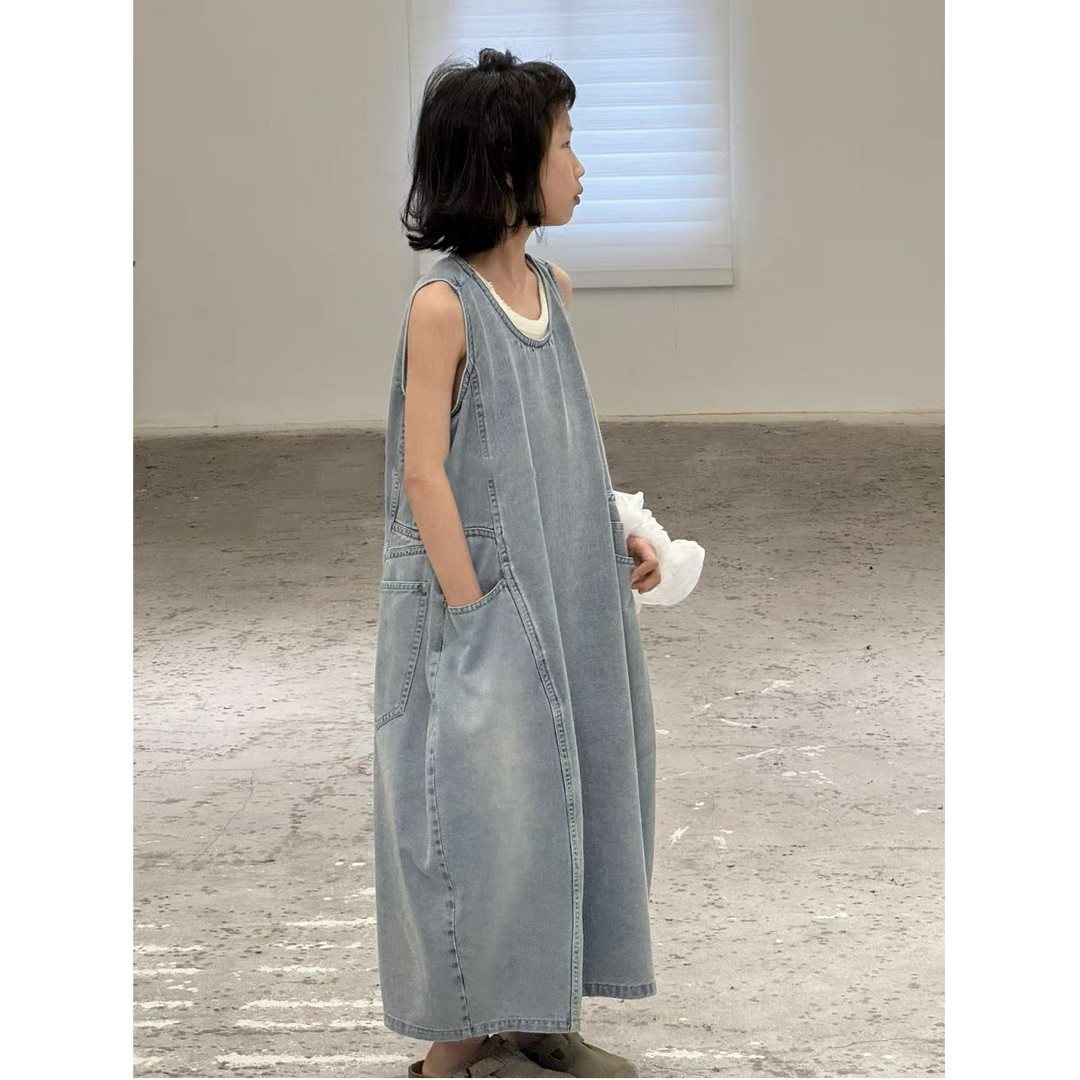 女童牛仔无袖连衣裙背带裙子长裙26春夏宽松休闲潮百搭中大童亲子