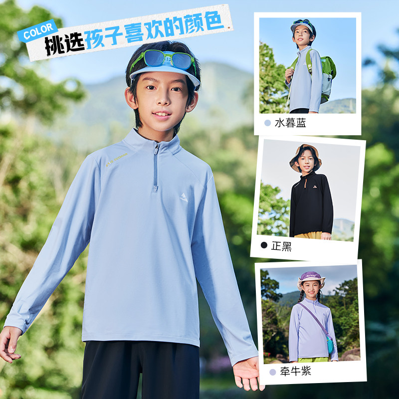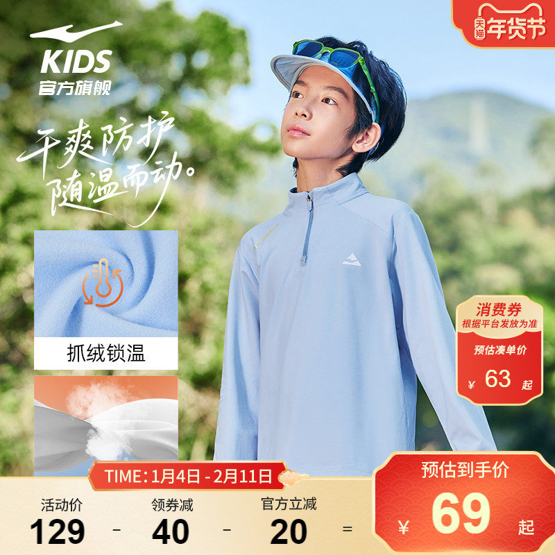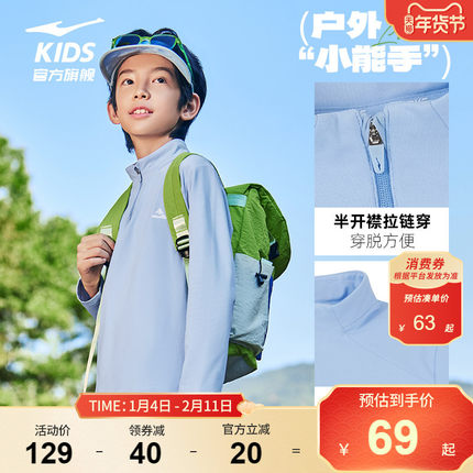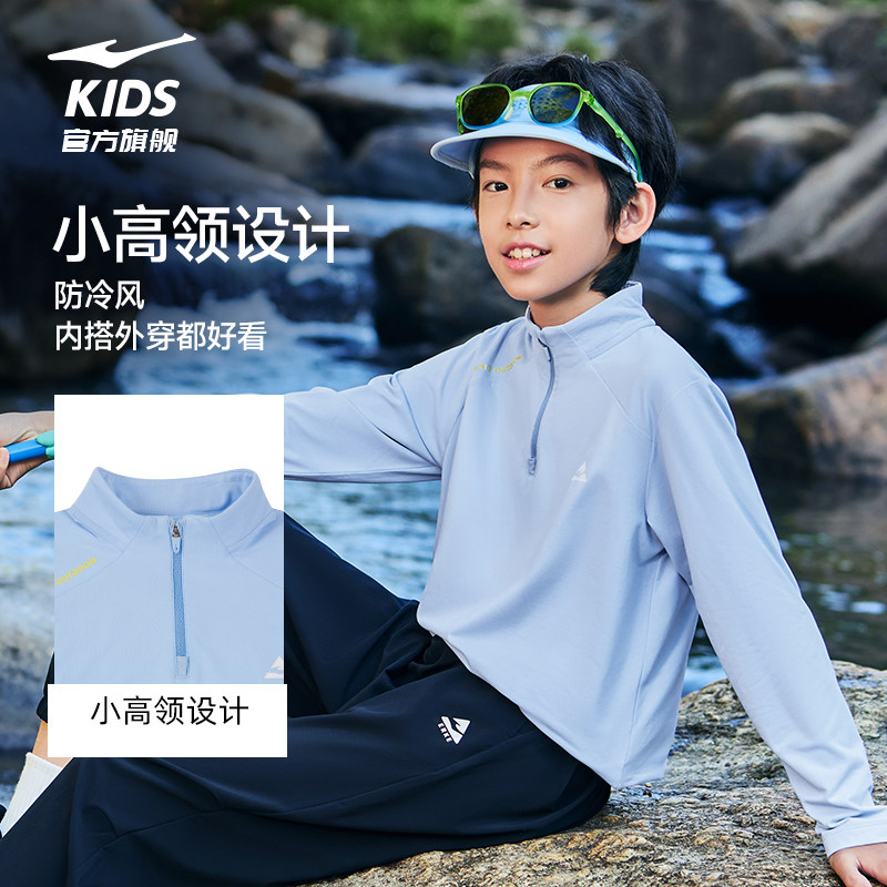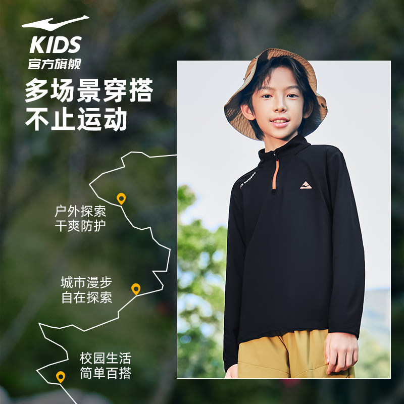 鸿星尔克童装男童长袖T恤春季新款儿童中大童半开襟拉链上衣女童