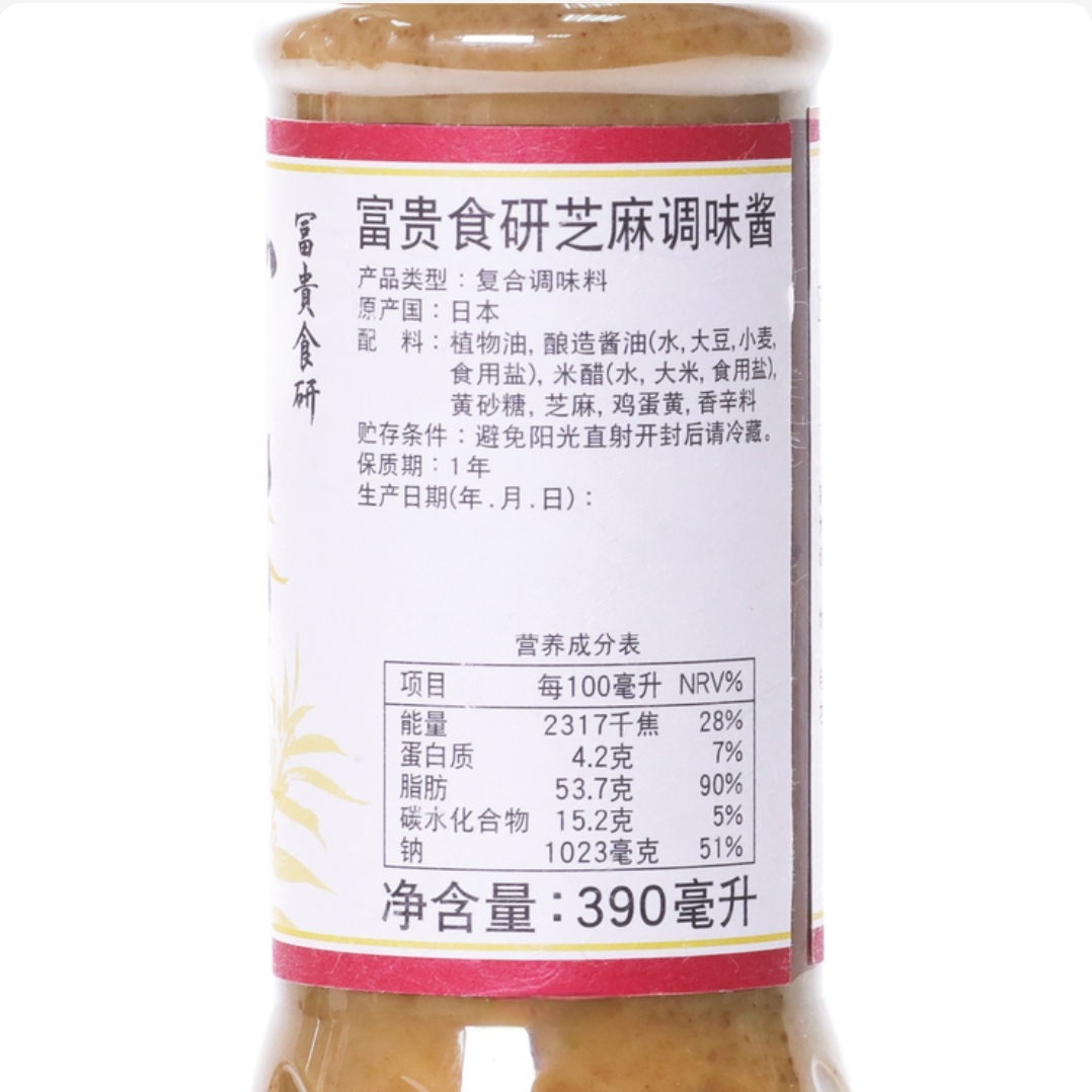 开市客代购日本进口富贵食研调味芝麻酱复合调味料可拌菜色拉汁