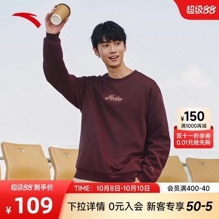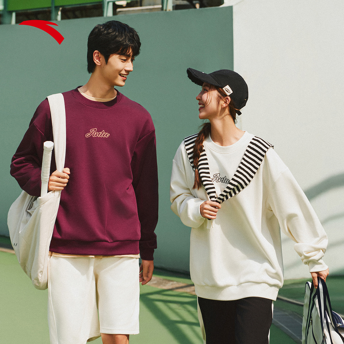 安踏加绒卫衣男女同款2025秋冬新款内搭情侣潮流休闲运动套头上衣