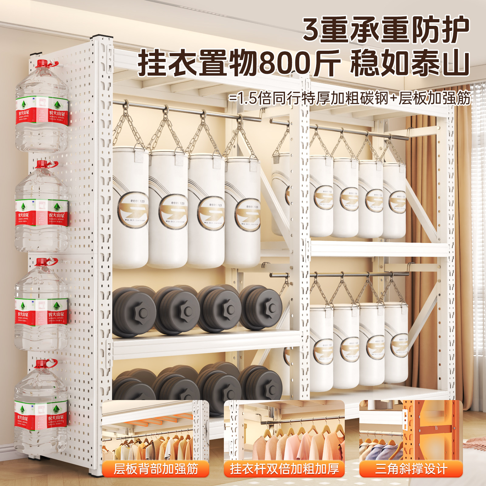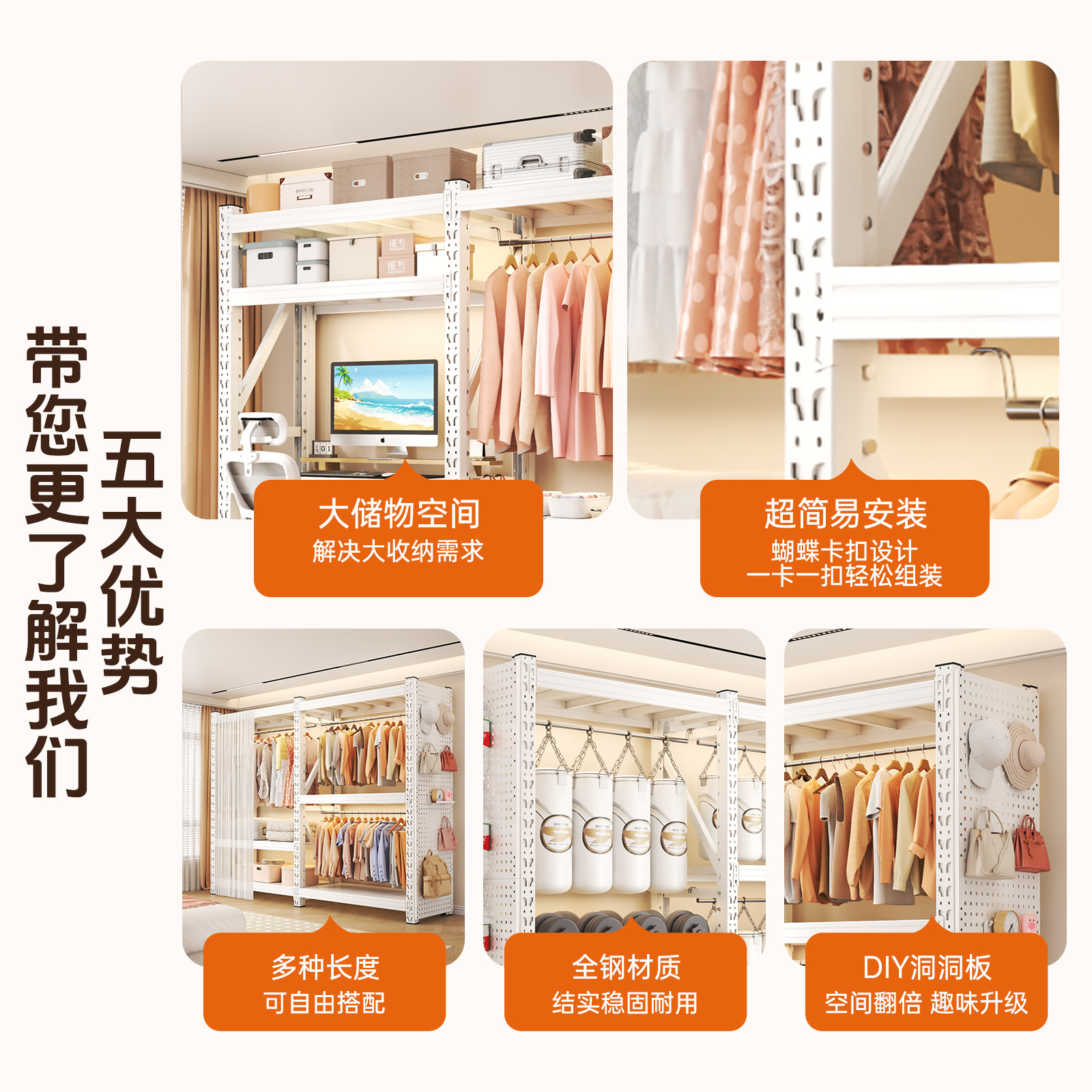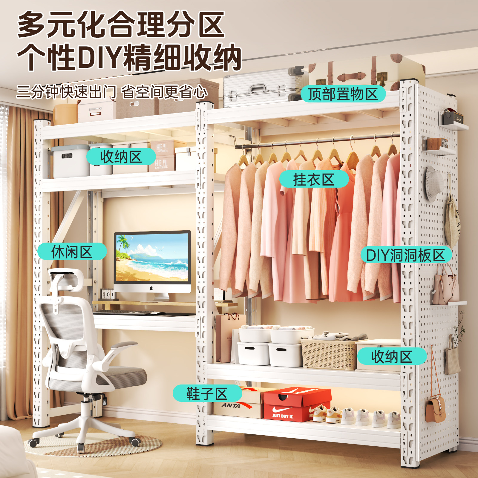 货架式衣柜家用卧室多功能一体靠墙置物架金属小户型洞洞板储物柜