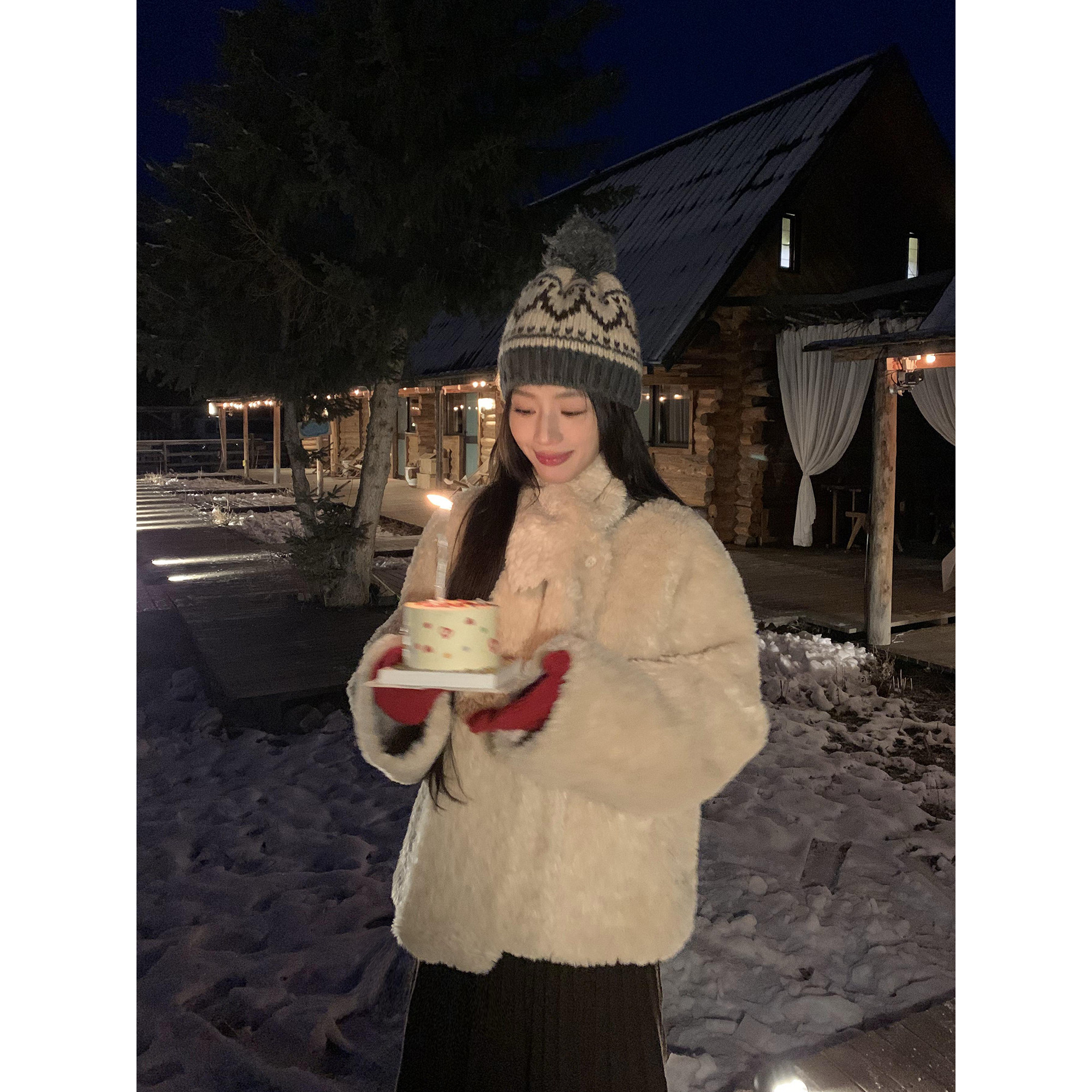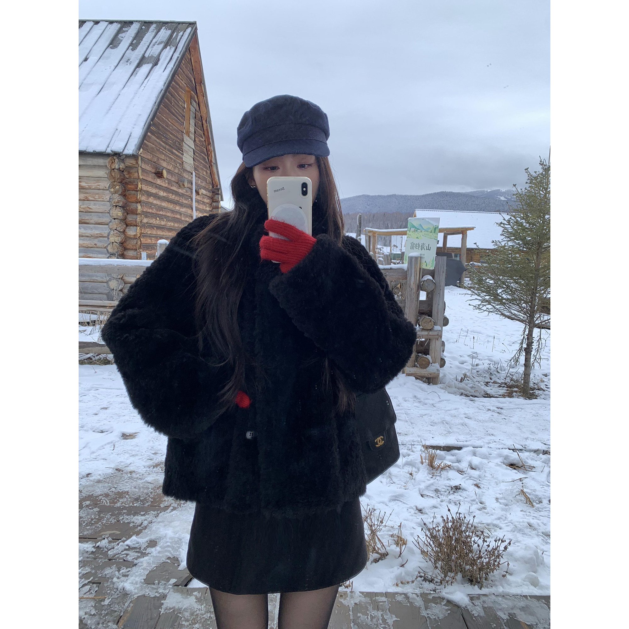 pusumede 配围巾~高级感仿羊羔毛短款皮草女宽松廓形保暖毛毛外套
