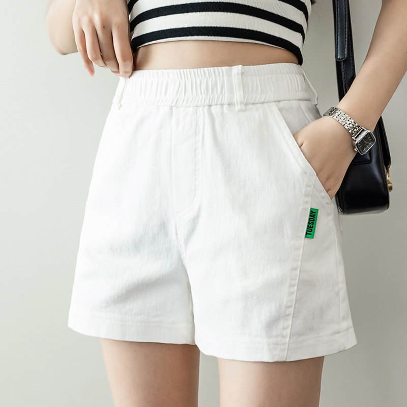 黑色牛仔短裤女夏季薄款松紧腰a字高腰宽松显瘦百搭休闲外穿热裤