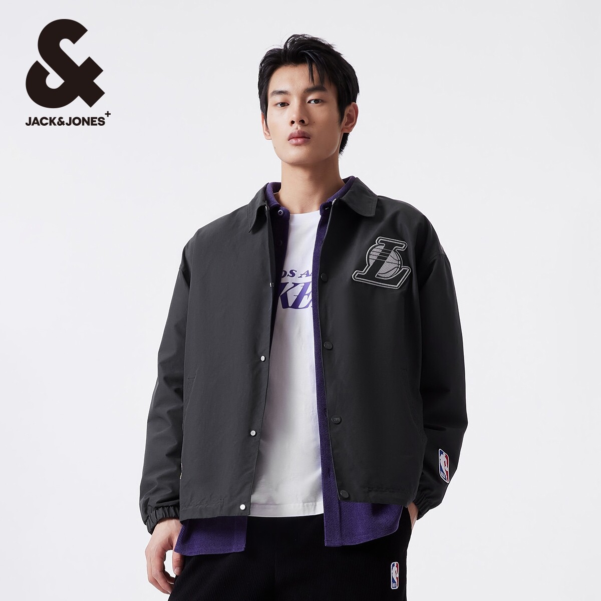 杰克琼斯男装夹克 外套春季NBA联名湖人队翻领潮按扣门襟男款
