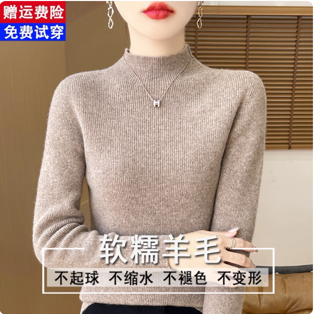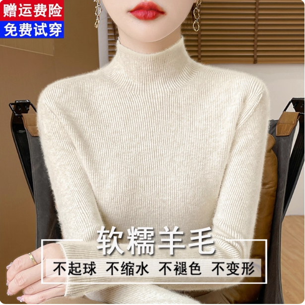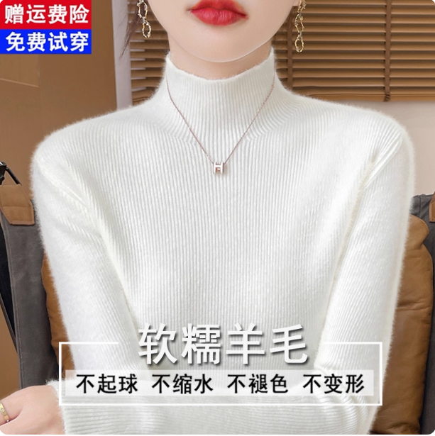 恒源祥集团彩羊新款半高领2025冬羊毛衫女修身毛衣内搭针织打底衫