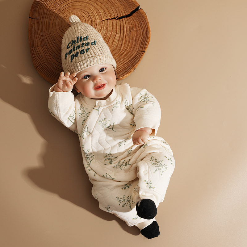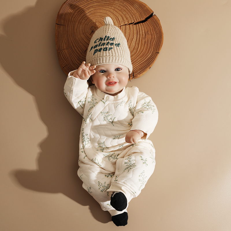 婴姿婴儿连体衣冬季夹棉保暖衣服新生儿外出哈衣秋冬男女宝宝棉