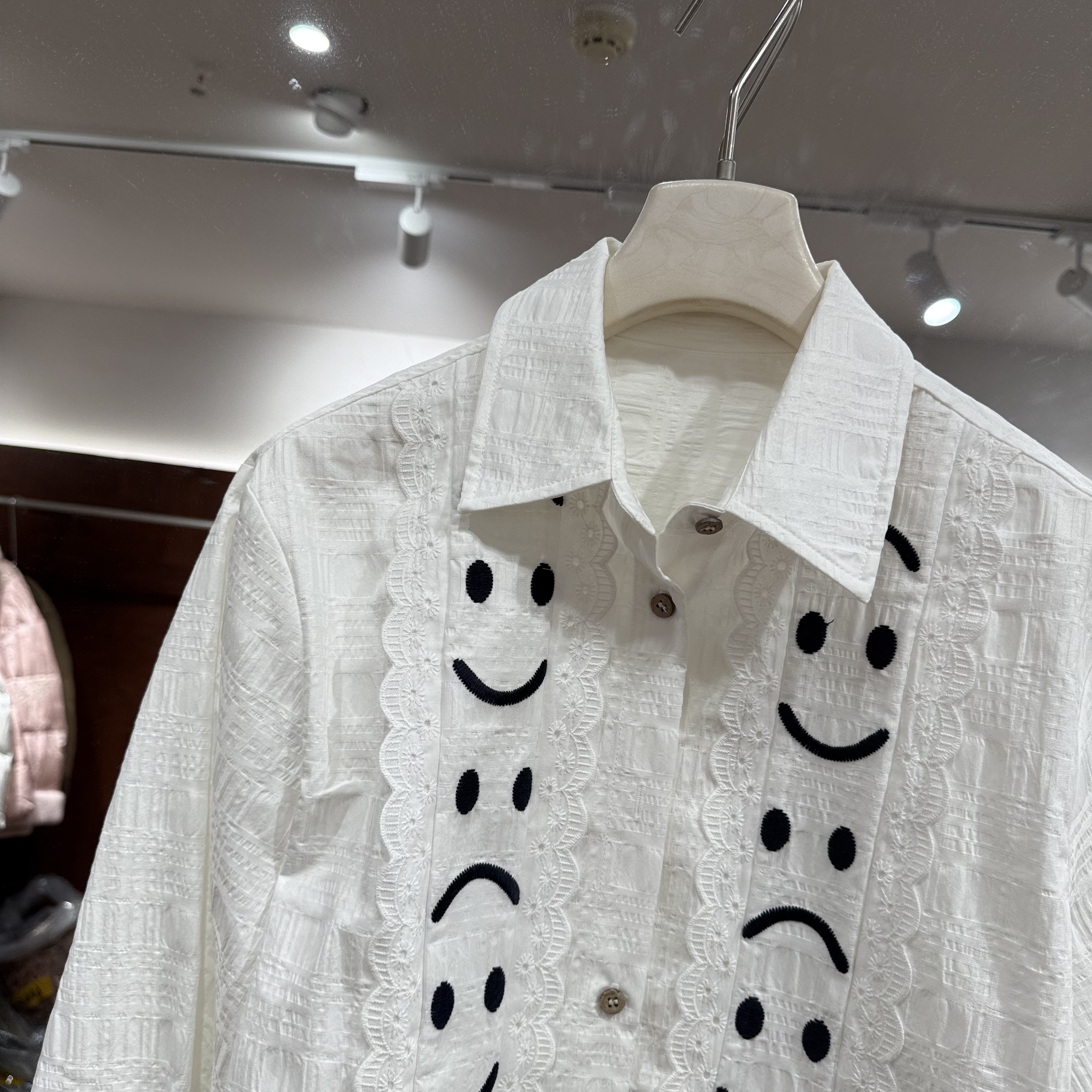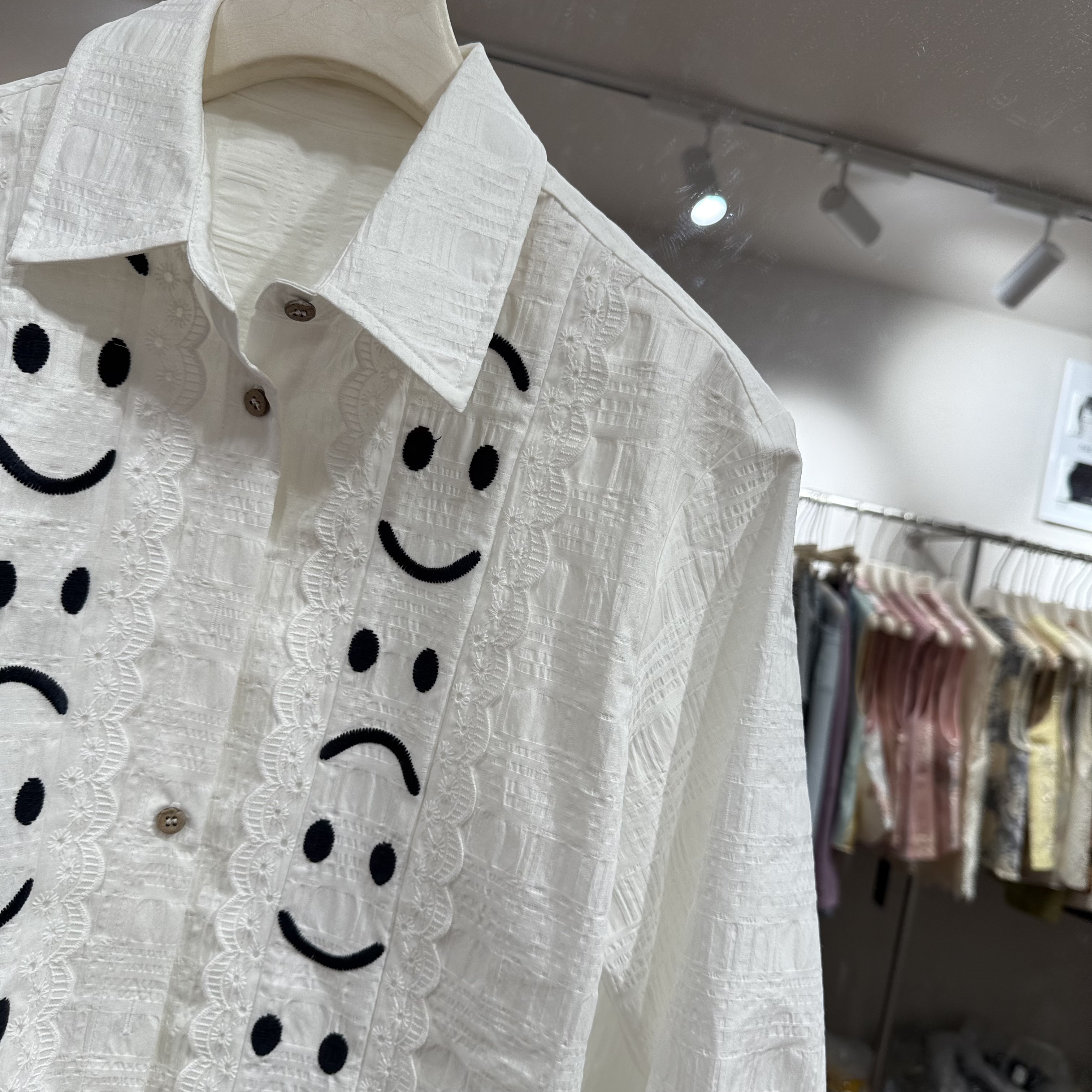 欧洲站2026春季新款欧货翻领表情刺绣设计感百搭衬衫上衣女潮5830