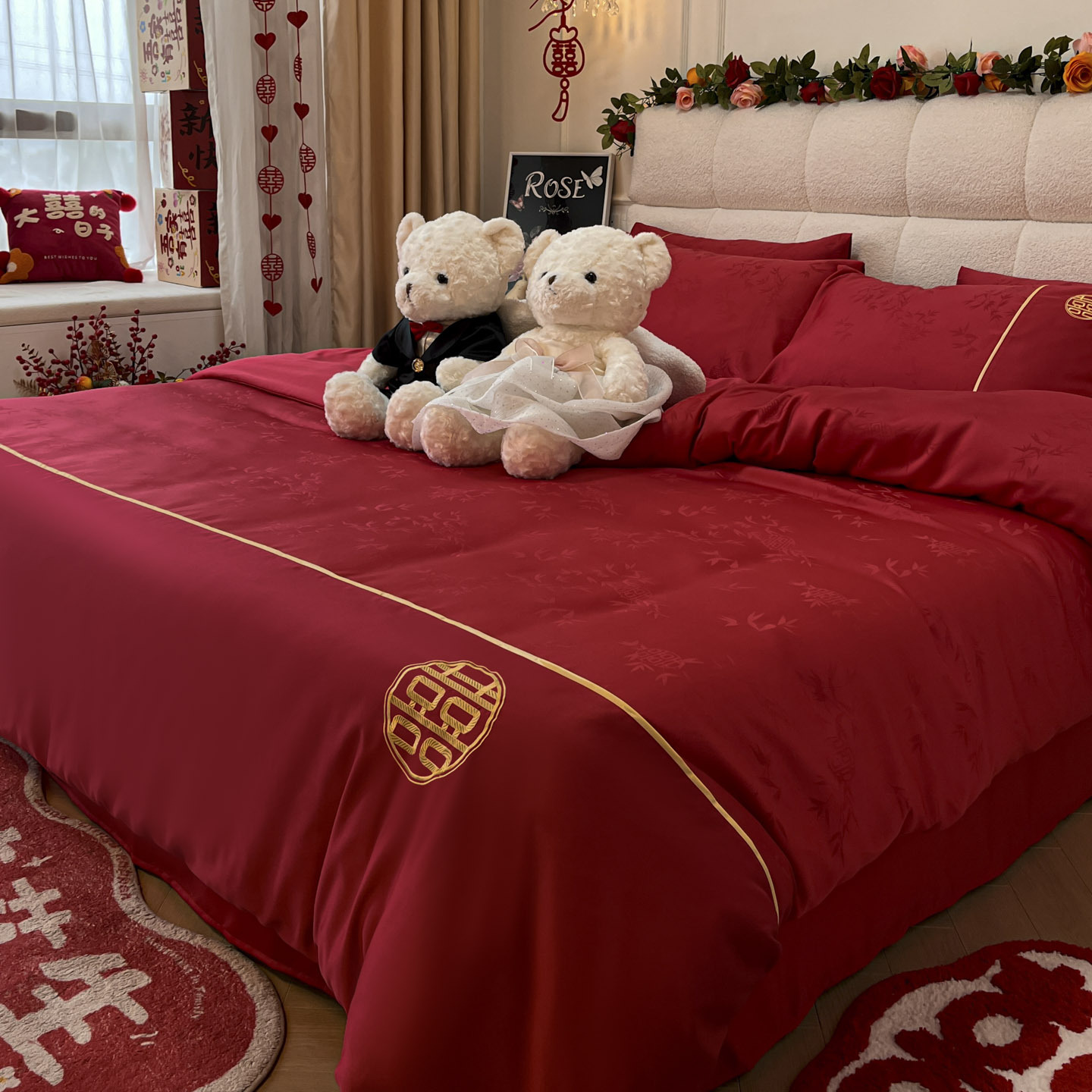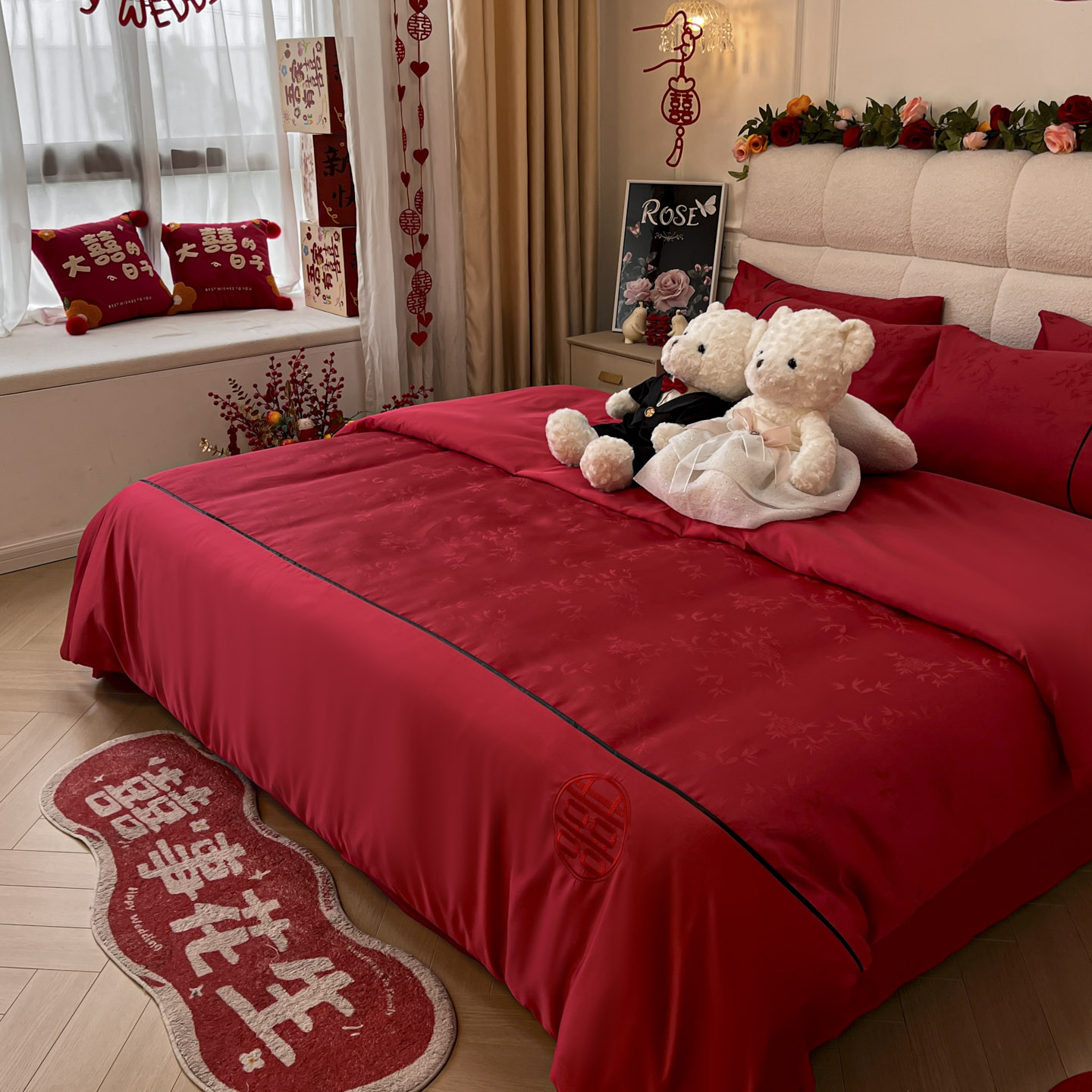 不掉色不起球高档中式婚庆四件套