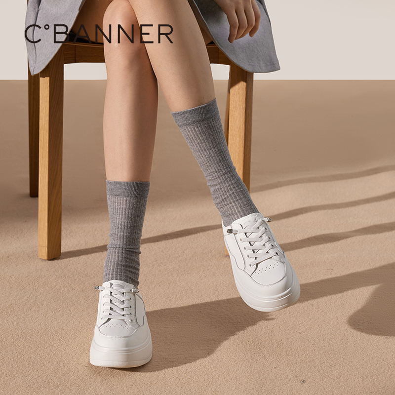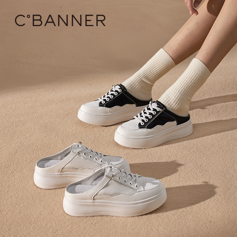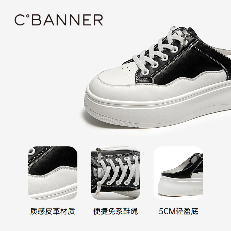 千百度厚底一脚蹬包头拖女2025夏季新款休闲小白鞋增高外穿半拖鞋