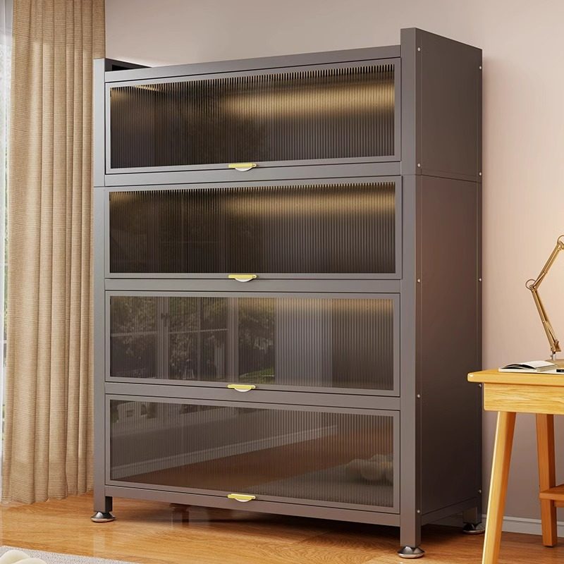 家用钢制置物收纳柜子卧室阳台客厅多层儿童鞋柜简易衣柜杂储物柜