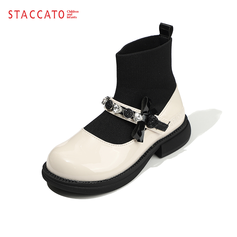 思加图童鞋小香风闪钻公主靴秋季舒适软底时装靴女孩时尚洋气袜靴