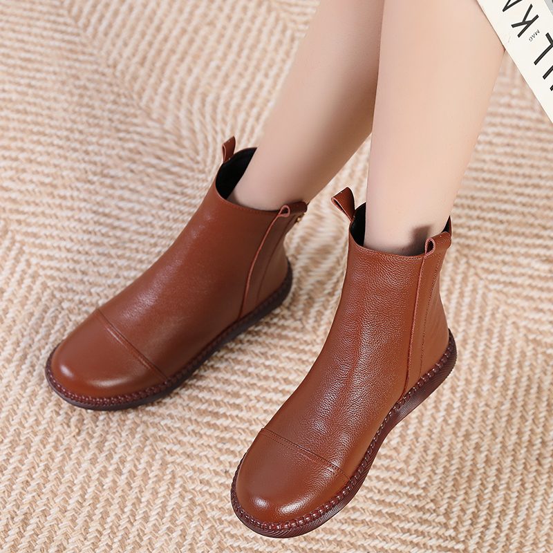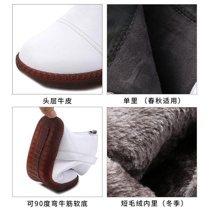 2025款秋冬季女鞋真皮白色短靴女平底软底单靴加绒休闲大码女靴子