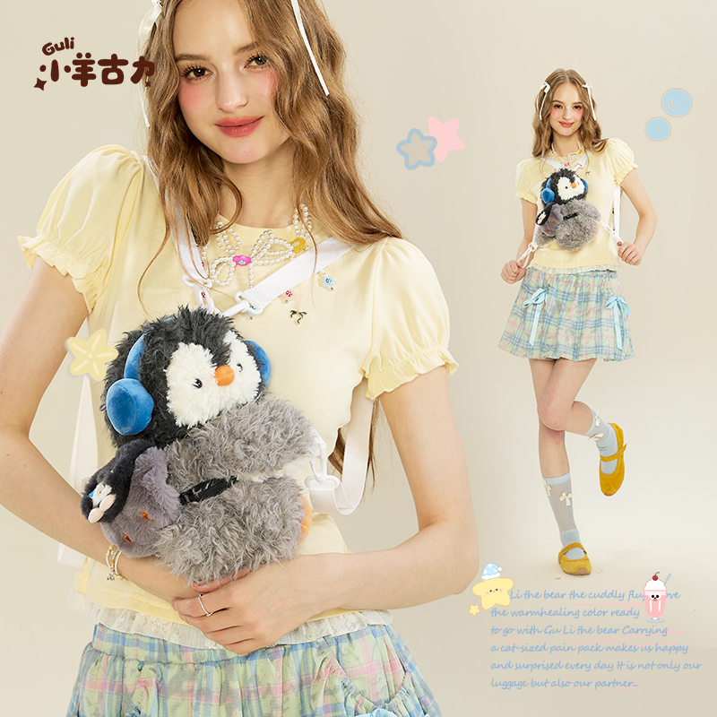 【小羊古力】企鹅可爱趴趴包双肩背包包毛绒玩偶lolita斜挎包礼物