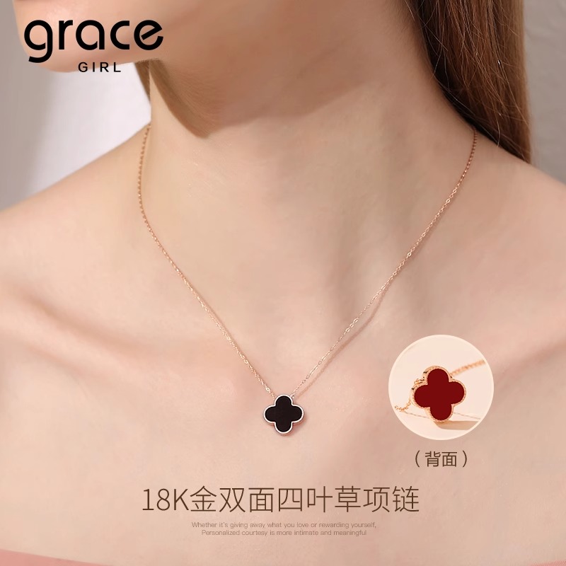【自营】Grace Girl18K金双面四叶草项链女高级感生日礼物送女友