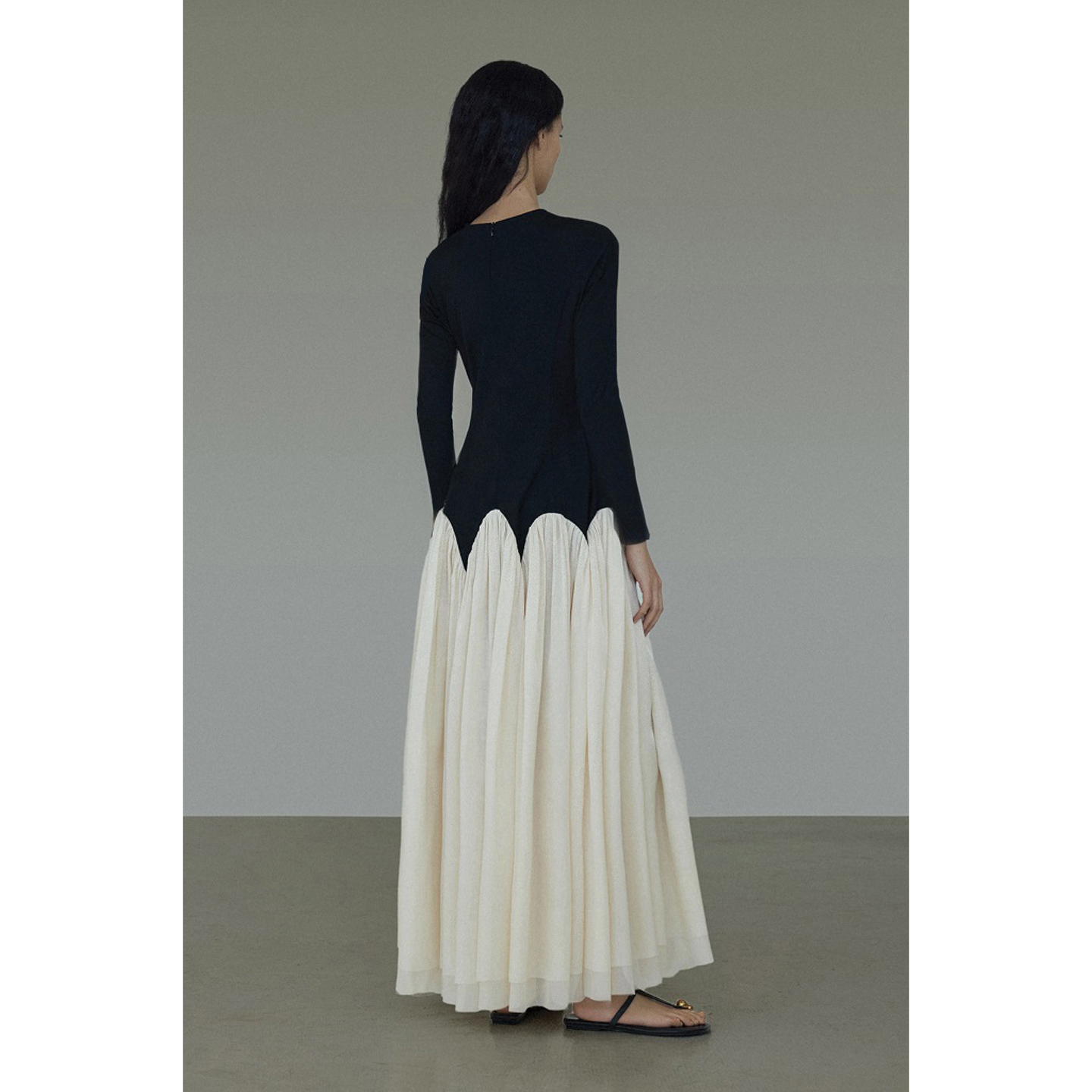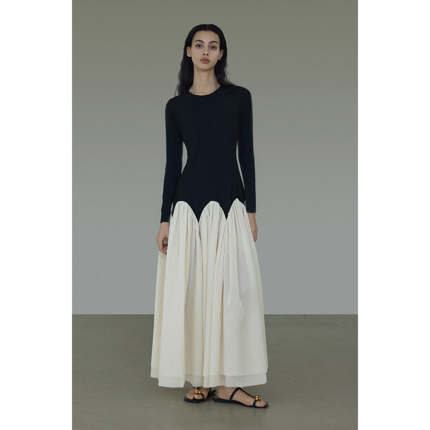 UNSPOKEN撞色拼接长袖连衣裙女秋季设计感小众修身显瘦高级感长裙