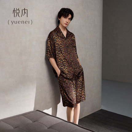 悦内睡衣男士夏季莫代尔短袖短裤家居服男款夏款夏天冰丝时尚豹纹