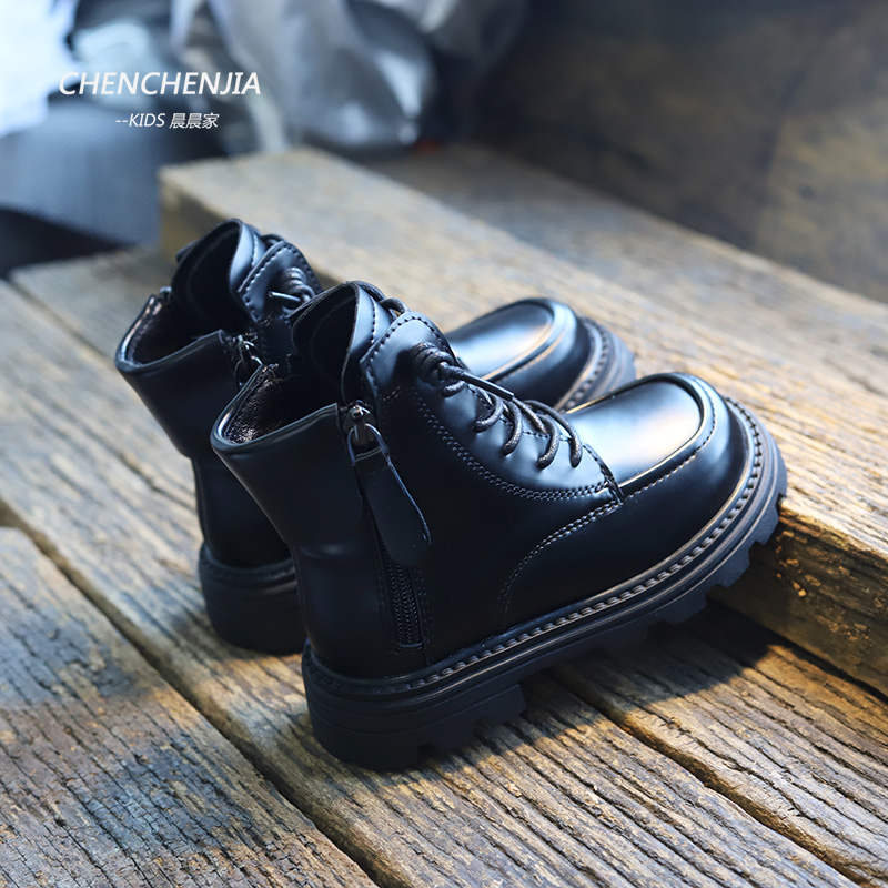 儿童马丁靴男童黑色走秀短靴英伦风真皮女童漆皮秋冬新款宝宝靴子