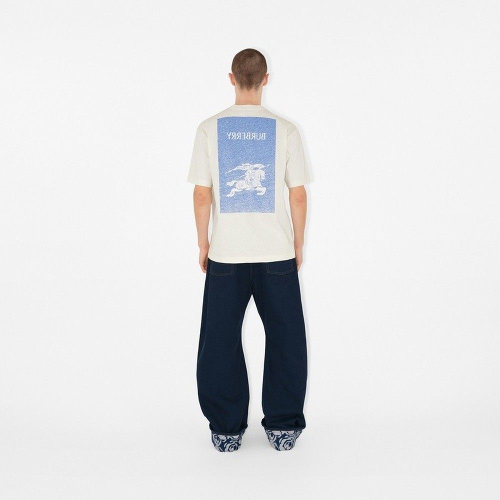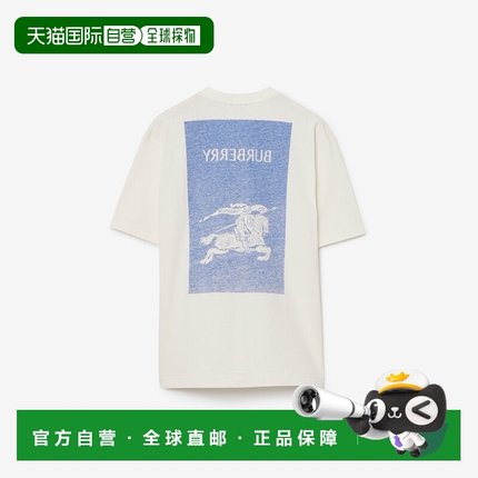 自营欧洲直邮BURBERRY博柏利男士蓝色骑士图印花短袖宽T恤男装