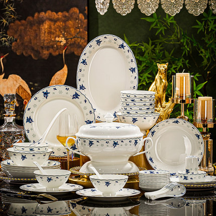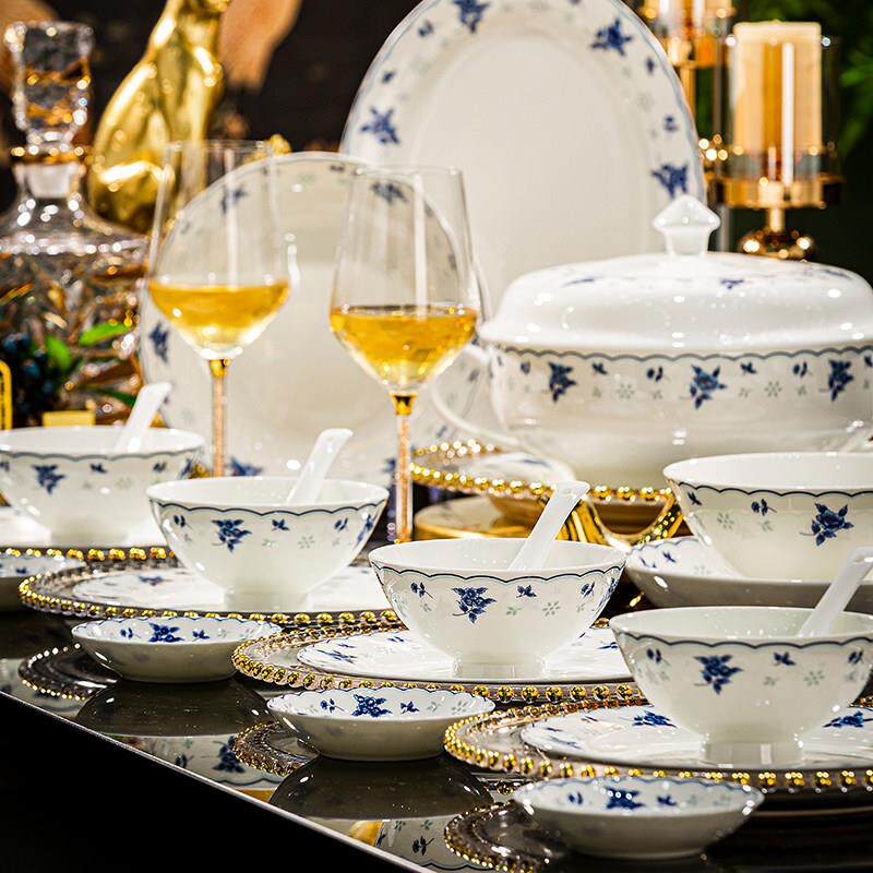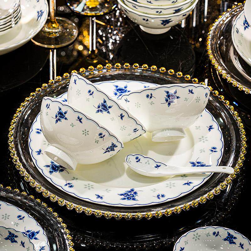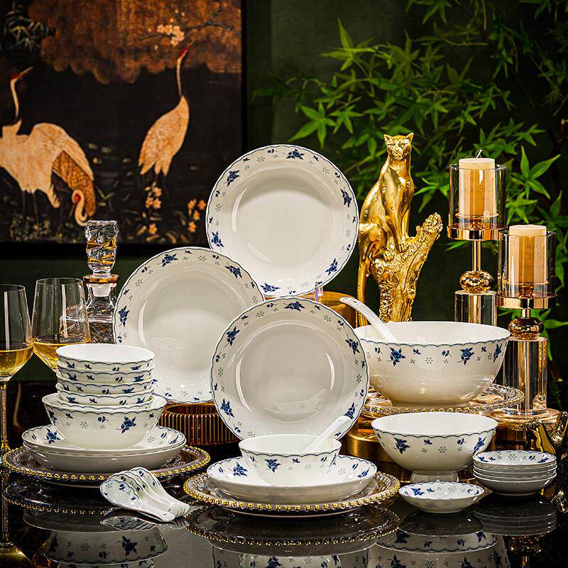 景德镇骨瓷餐具套组家用陶瓷器釉下彩青花瓷碗碟套装送礼瓷