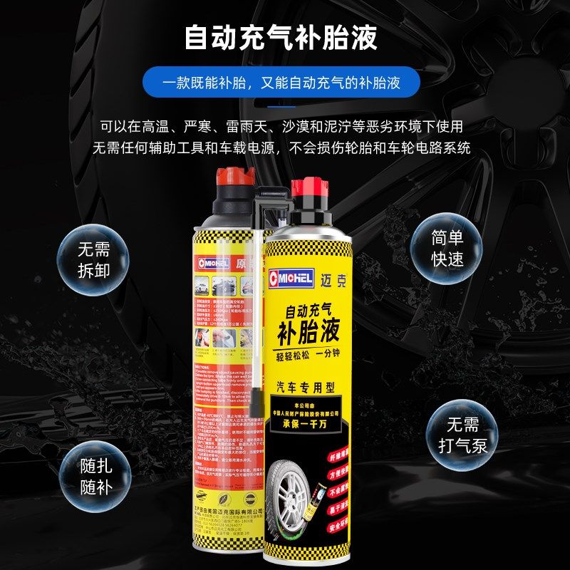 迈克自动充气补胎液真空胎快速自补液新能源汽车专用充气补胎胶水