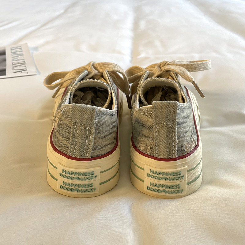 方鱼鹿 松糕厚底牛仔布帆布鞋女2023秋季INS韩版百搭休闲增高板鞋