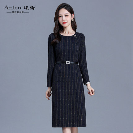 埃伦气质长袖连衣裙女2025新款洋气显瘦中长款优雅打底A字减龄裙