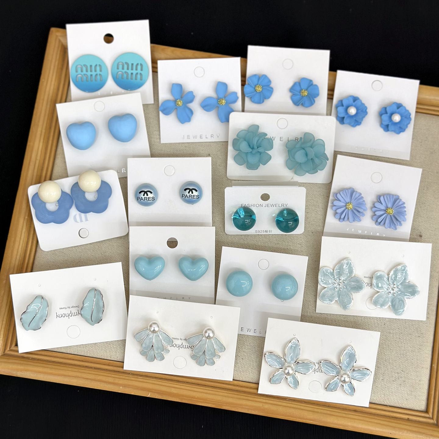 蓝色耳环~夏日海盐蓝小清新度假风耳坠耳钉小众设计高级感耳饰女