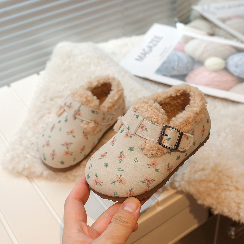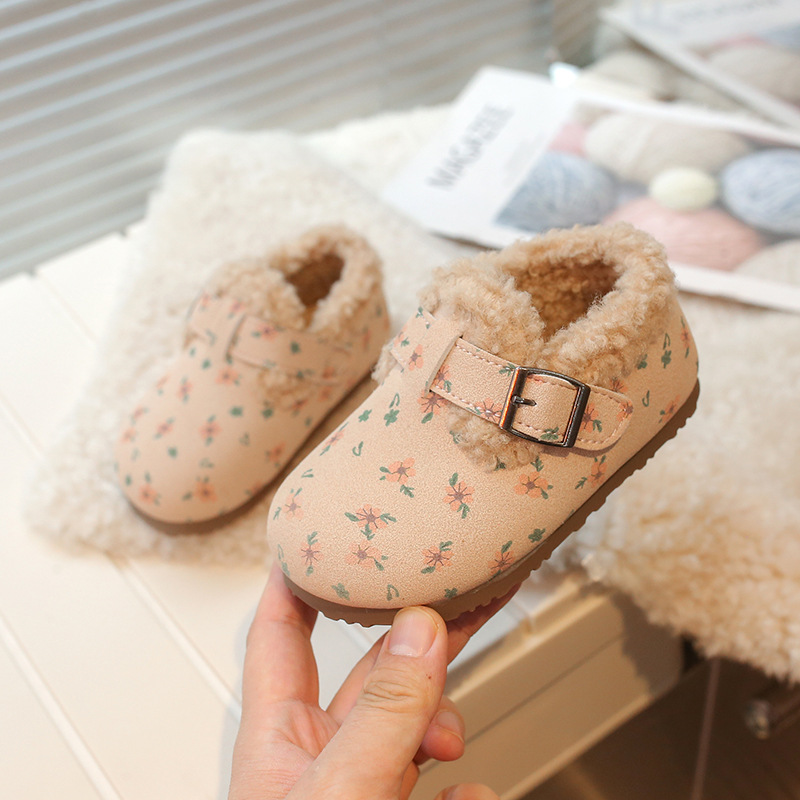 女童二棉鞋2024秋冬款国风小女孩毛毛鞋加绒绣花豆豆鞋儿童勃肯鞋