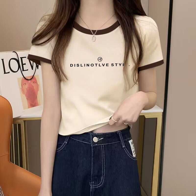 正肩法式白色短款短袖小个子上衣女夏季设计感小众洋气卡腰小衫潮