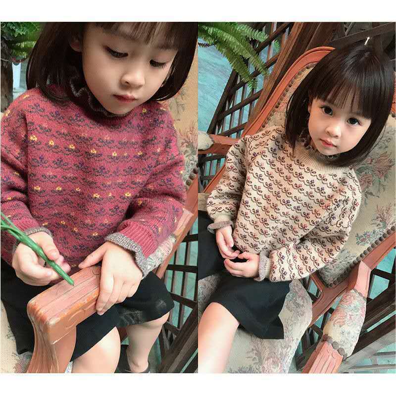女童毛衣秋冬装洋气韩版儿童加绒加厚针织衫中大童保暖打底套头衫