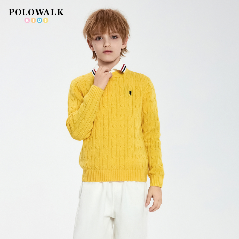 POLOWALK童装男童圆领羊毛衫秋冬新款女童百搭经典款式绞花针织衫