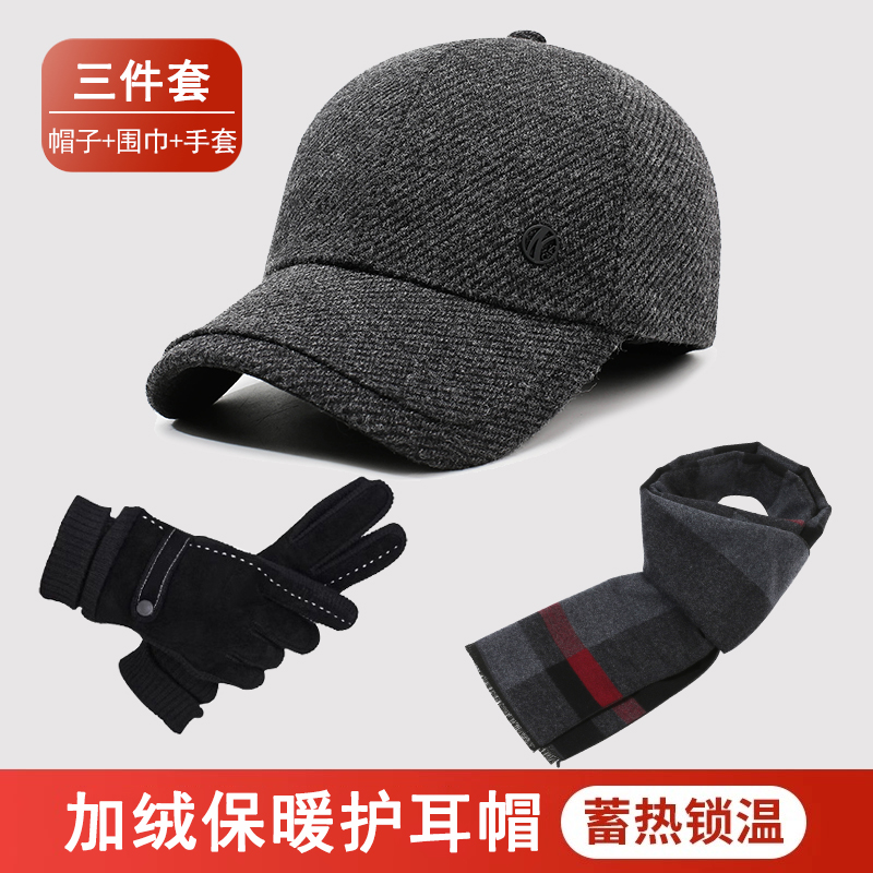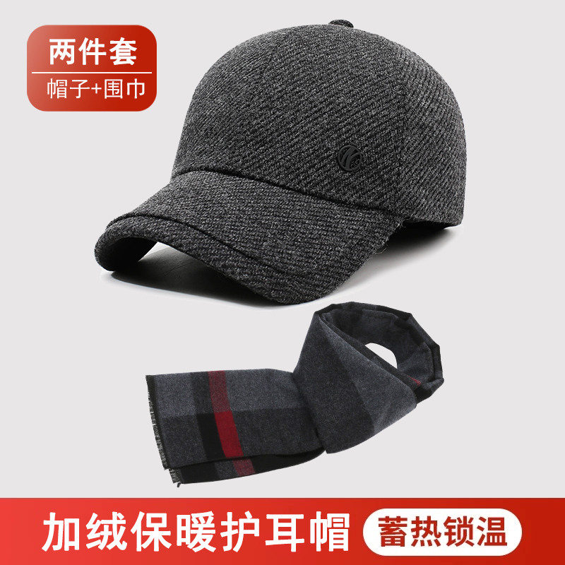 中老年男士秋冬季保暖棒球帽加绒加厚护耳鸭舌帽2025新款爸爸防寒