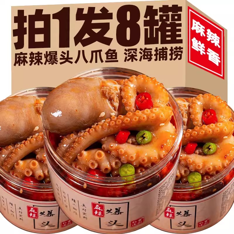 八爪鱼爆头小吃麻辣小海鲜熟食罐头生蚝鱿鱼扇贝虾尾海味零食礼包